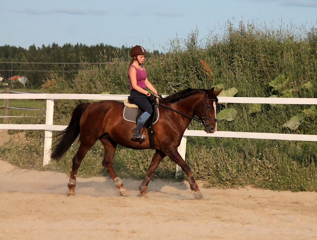Oon kutsunu Saraa nyt niin paljo Sarpaksi, (ette oo varmaan ny blogin puolella kuullukkaa koskaan) että alkaa aiva itteäki kyllästyttää :D mutta eikö se niin mee, että rakkaalla lapsella on monta nimeä ;) ♥ S on menny nyt niin hyvin ku oon ollut ratsastamassa, etenkin tänään ja eilen. Eilen ei harmillisesti ollu kameraa mukana tallilla, mutta tänään onneksi oli. S on menny hyvin nyt ryhdikkäässä muodossa ja säilyttäny sen melki kokoajan, eli parannusta huomattavissa ! On se ihanaa ku huomaa välillä kehittyneensäkki :) Mulla on salainen ase, mikä auttaa Saran kanssa ihan älyttömän paljon ja se on.... tititititiii laukanvaihdot ! S innostuu niissä ja vaihtojen jälkeen on superhyper reipas ja herkkä ratsastaa. S pääsi vähä pyöreeseen kuntoon sairaslomallaan mutta nyt alkaa jo kuntoki nousta ja maha hävitä. Eilen tein laukanvaihtoja lämmittelyksi, jonka jälkeen työstimme askellajeja ja teimme myös kaikissa askellajeissa väistöjä. Tein myös historiaa, tein elämäni ensimmäiset laukkapohkeenväistöt ! :) Siitä tuli ihan huippufiilis, ku S meni niin mageesti ja ite viä onnistuki siinä. Oon huomannu et hetiku Saran saa kunnon muotoon ja "nostettua ylös" niin se on tosi miellyttävä ratsastaa ja tekee lähes kaiken mitä pyytää. Mutta silti saa joka kerta tehdä paljo töitä, S ei kyllä mitää ilmaseksi anna.... se on tullu huomattua. Ja ei meidän työskentely täydellistä oo, mutta sellasta mukavaa ja Saran kans töskentelystä voi nauttia (: ♥